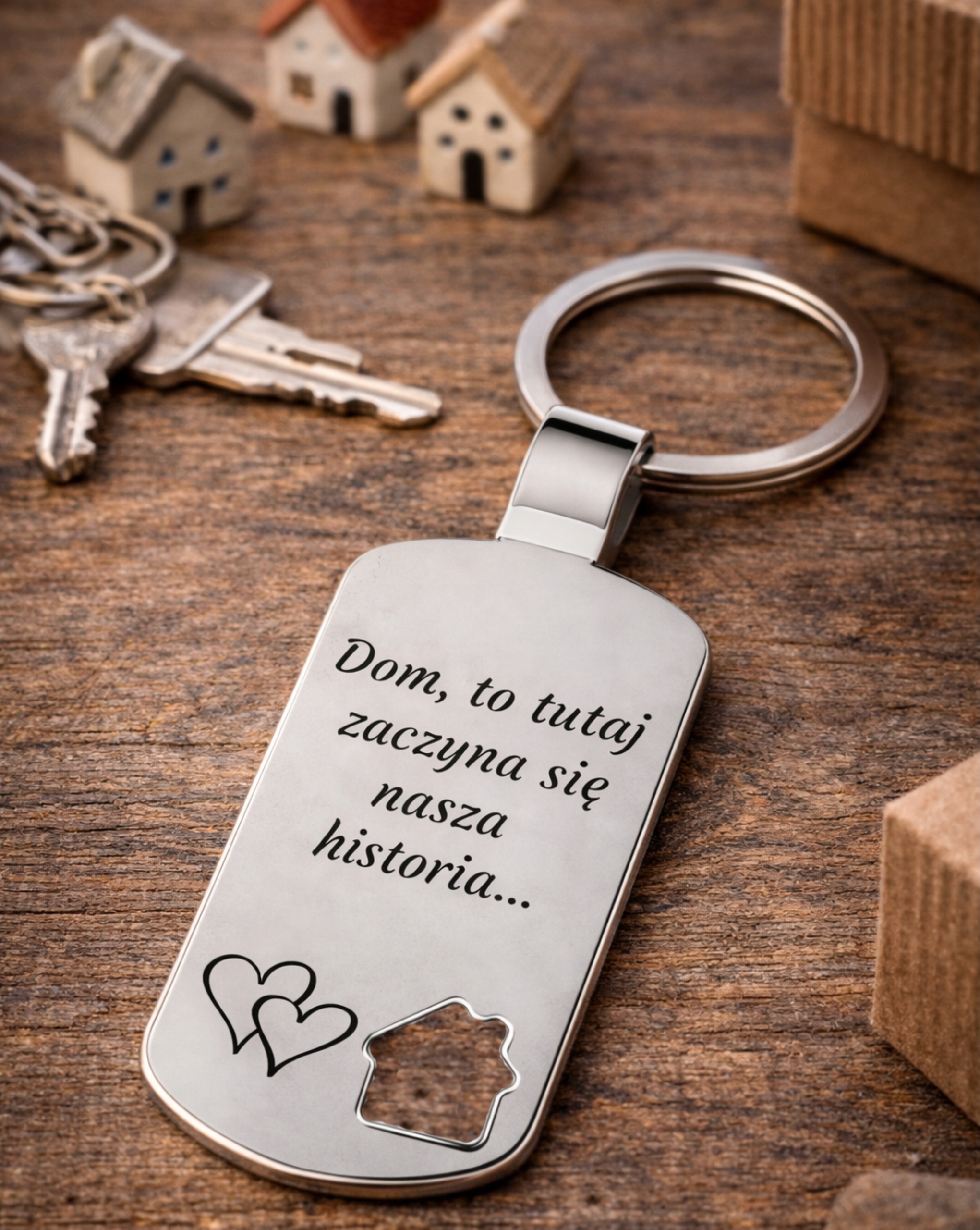 Brelok do Kluczy DOMEK z Grawerem GRATIS RODZINA Prezent na Dzień Chłopaka