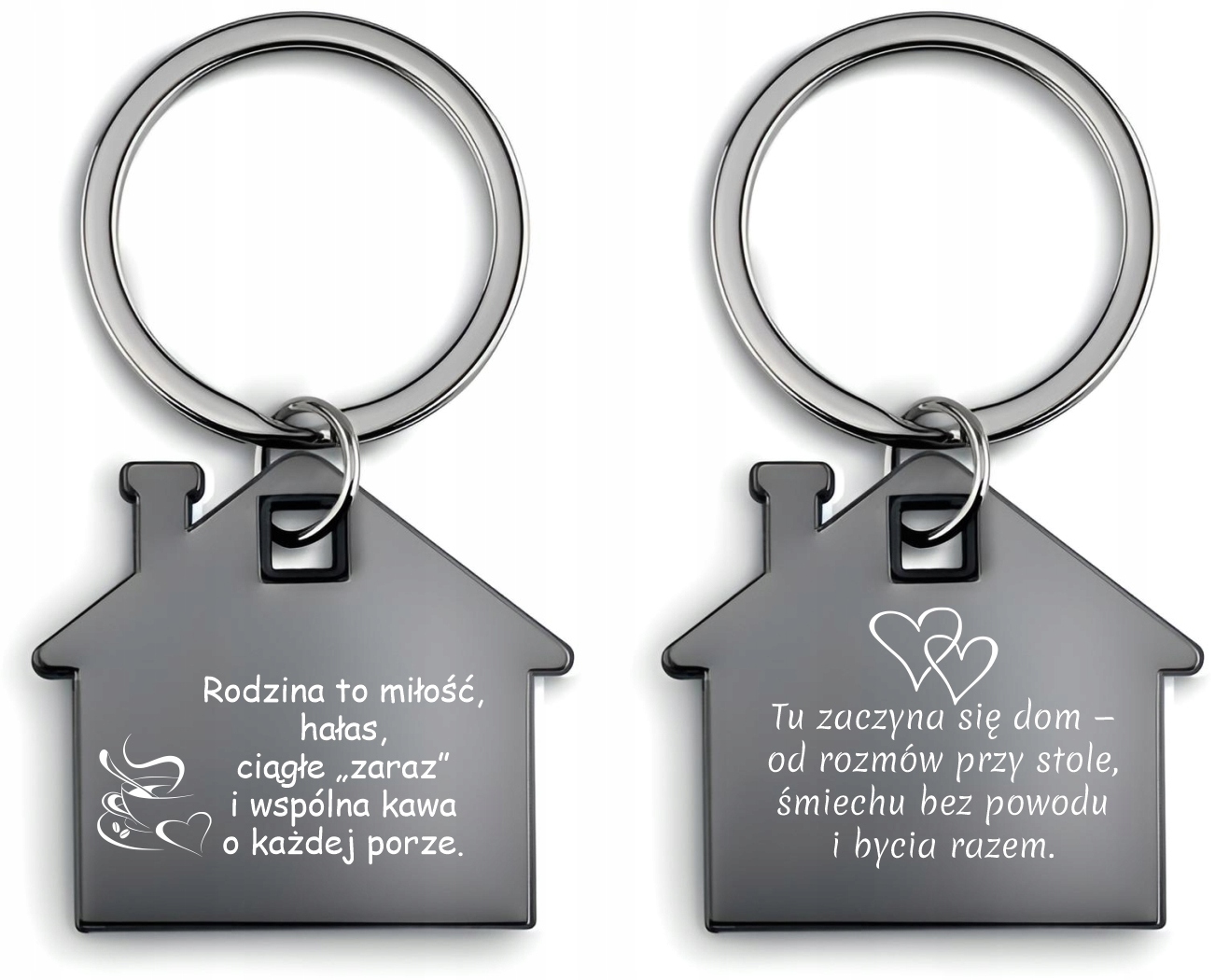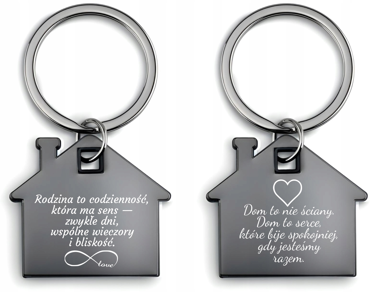 Brelok do Kluczy Stalowy DOMEK Czarny z GRAWEREM Zdjęcia Prezent RODZINA