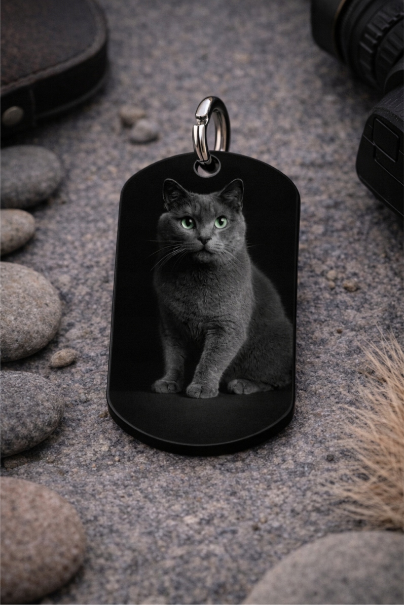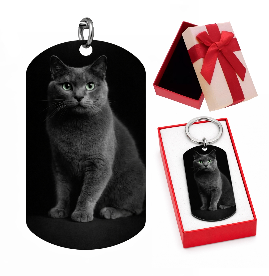 Brelok do Kluczy Stalowy z GRAWEREM GRATIS Zdjęcia Kota PUPILA na Prezent
