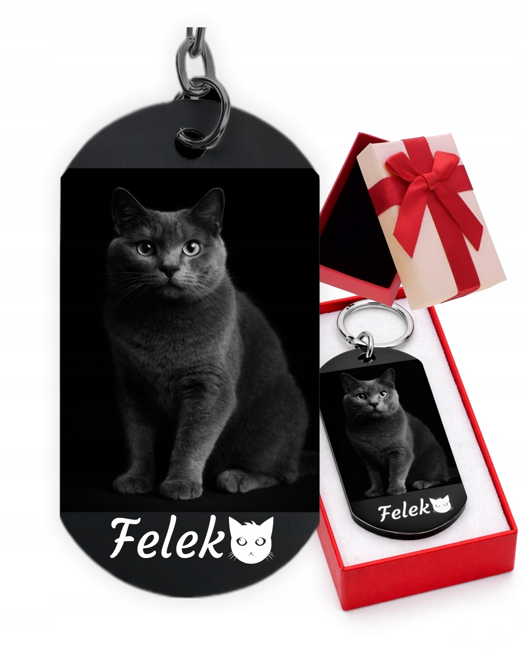 Brelok do Kluczy Stalowy z GRAWEREM GRATIS Zdjęcia Kota PUPILA na Prezent