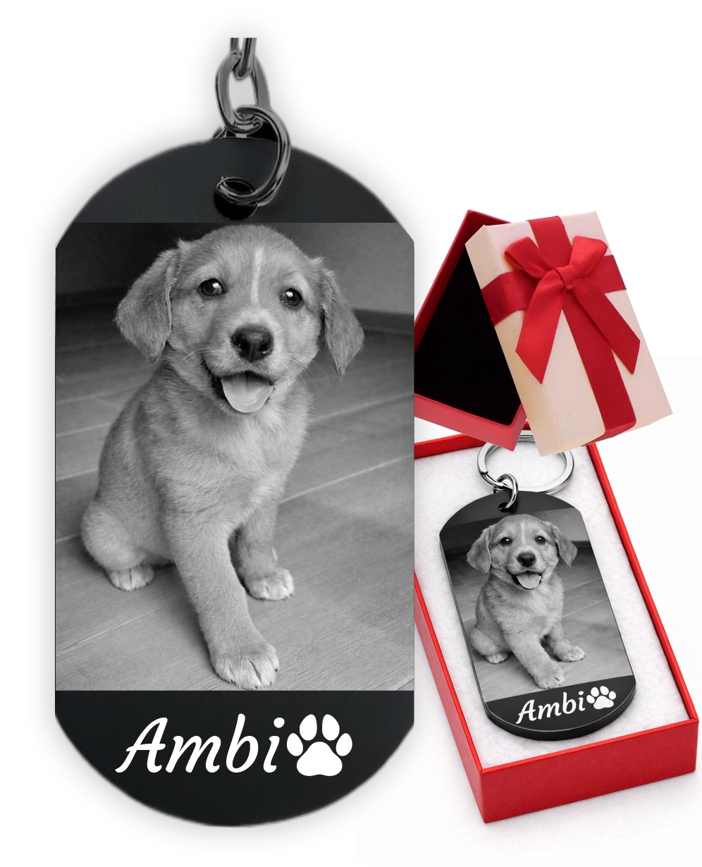 Brelok do Kluczy Stalowy z GRAWEREM GRATIS Zdjęcia Psa PUPILA na Prezent