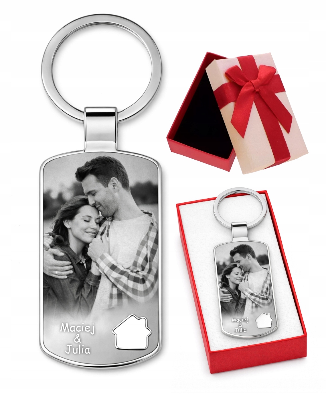 Brelok Stalowy do kluczy z GRAWEREM Zdjęcia DOMEK Prezent na Walentynki