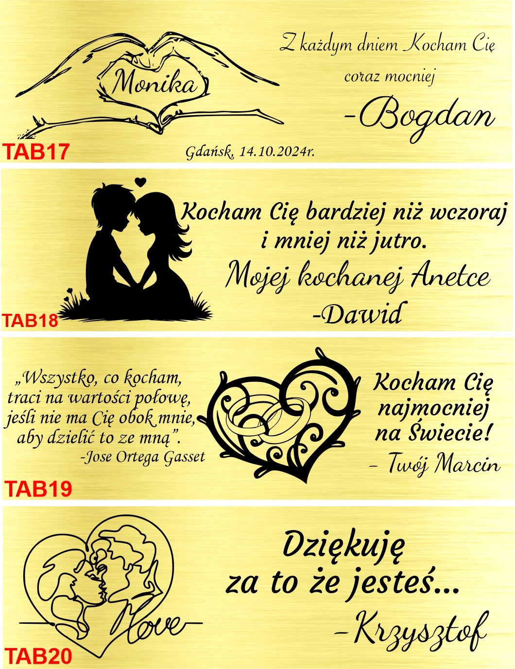 Nie masz pomysłu na napis? Skorzystaj z naszych gotowych inspiracji lub zaprojektuj coś całkowicie od nowa.