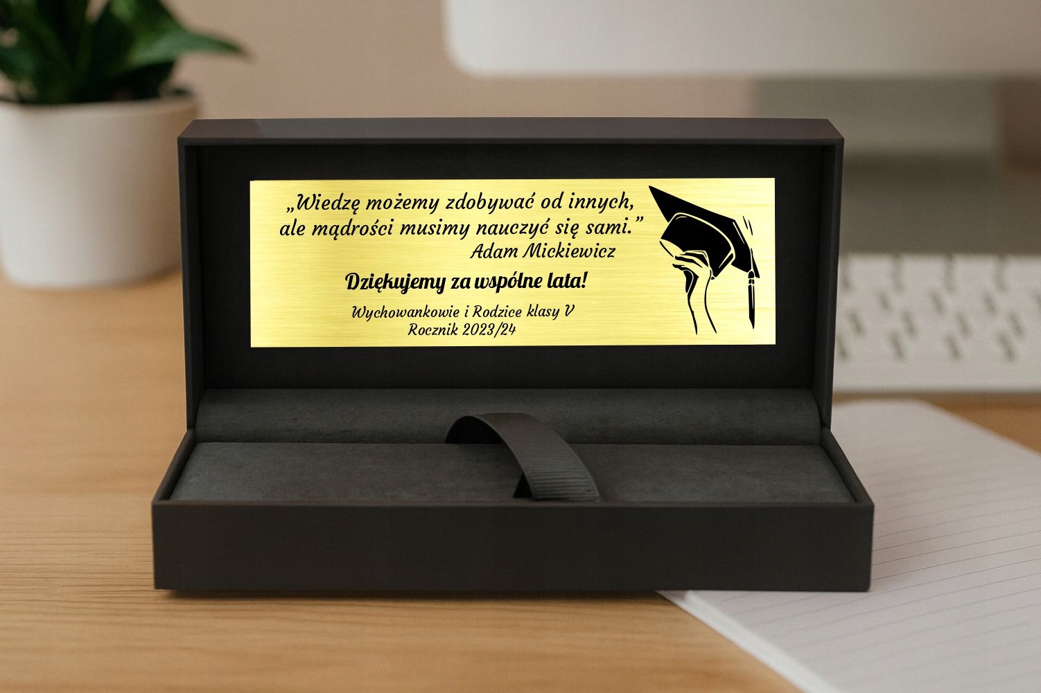 ✅ Złotą tabliczkę z grawerem (personalizowaną)