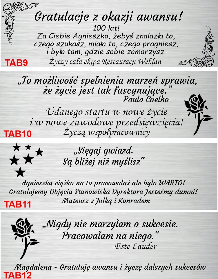 tabliczkę z dedykacją – dowolny tekst + grafika
