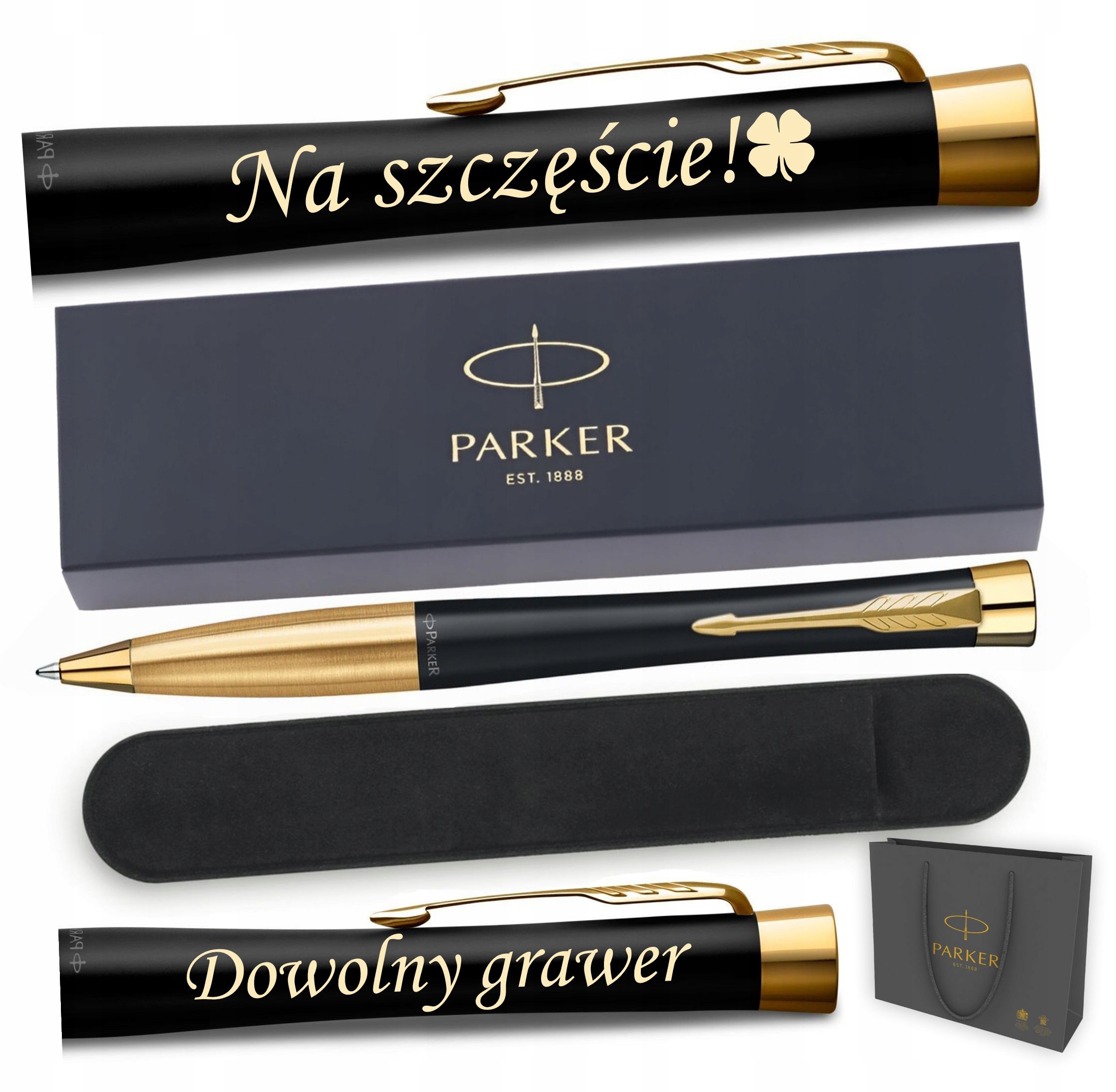 • Oryginalne pudełko Parker, torebka prezentowa Parker + welurowe Etui