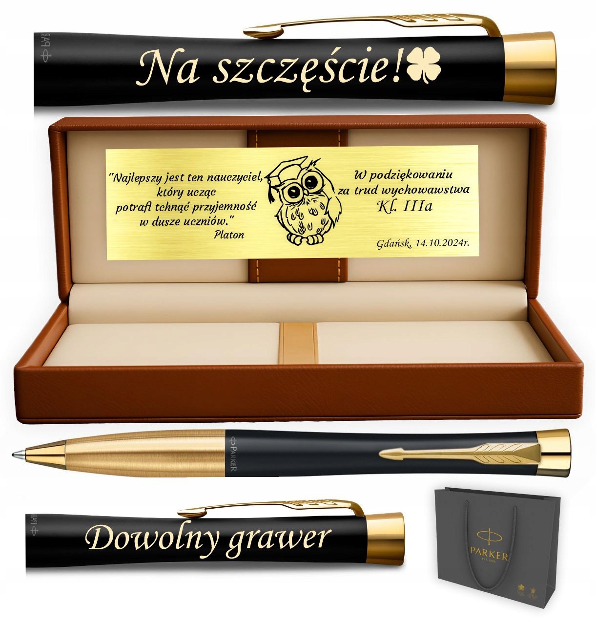 Parker Urban GT Czarny z grawerem i złotą tabliczką to symbol elegancji i wdzięczności.