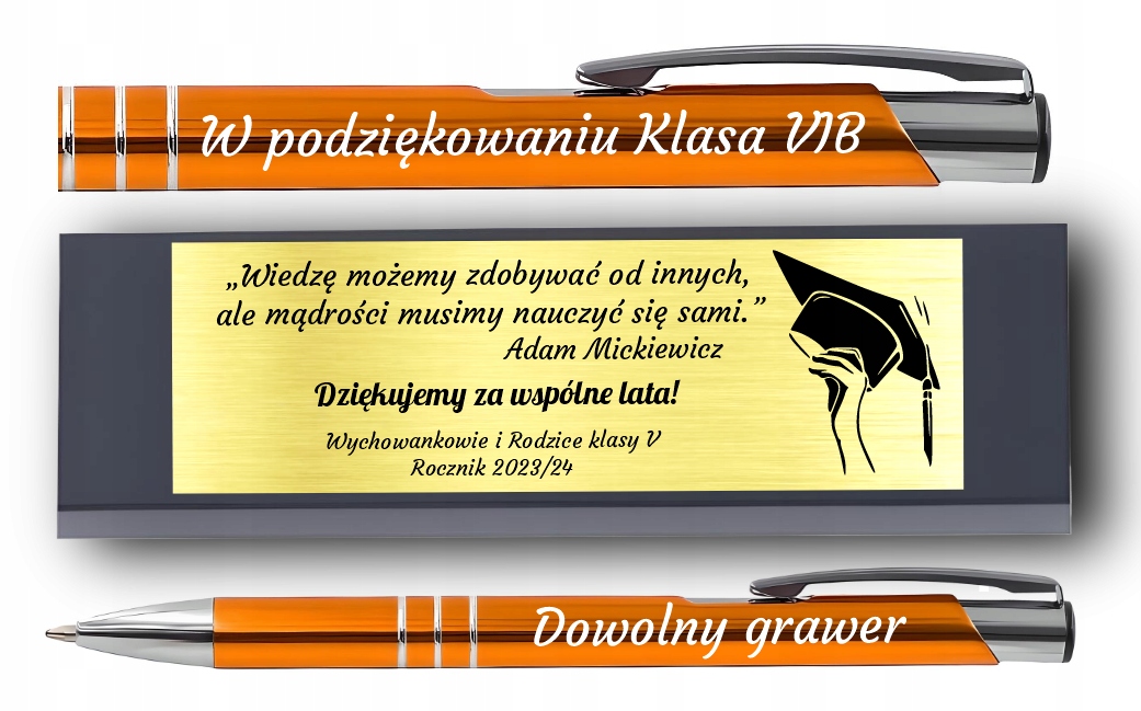 Długopis z Grawerem GRATIS Na Prezent Pomarańczowy Prezent dla Nauczyciela