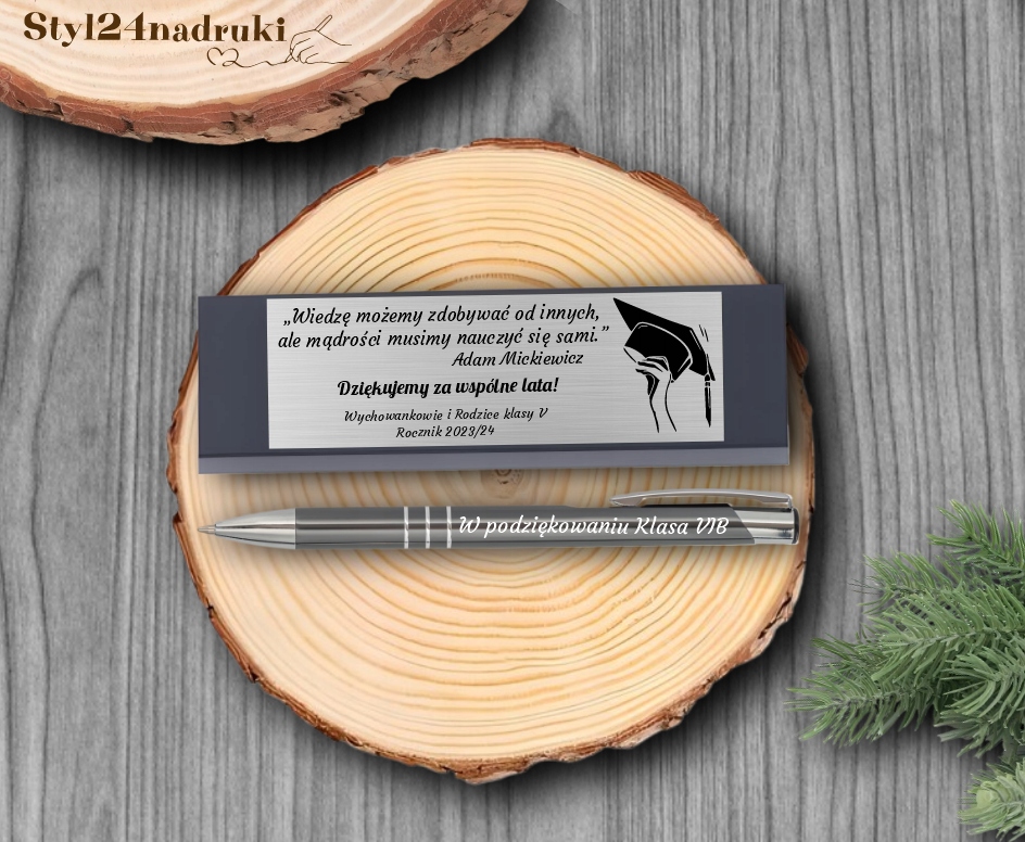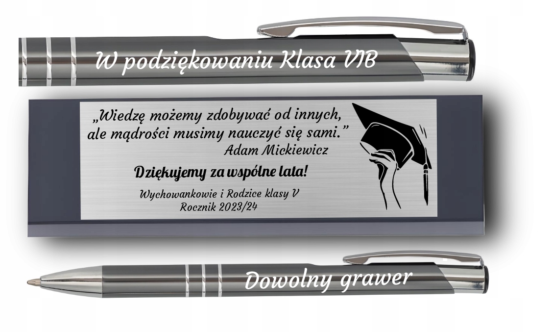 Długopis z Grawerem GRATIS Na Prezent Szary Prezent dla Nauczyciela