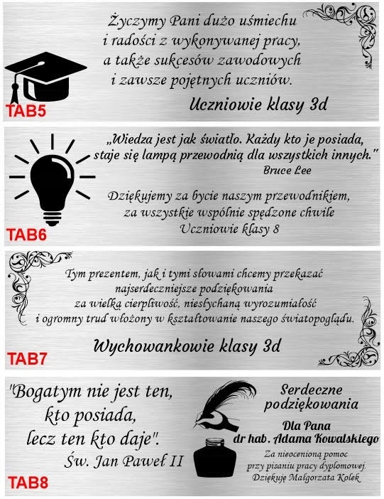 Nie masz pomysłu na napis? Skorzystaj z naszych gotowych inspiracji lub zaprojektuj coś całkowicie od nowa.