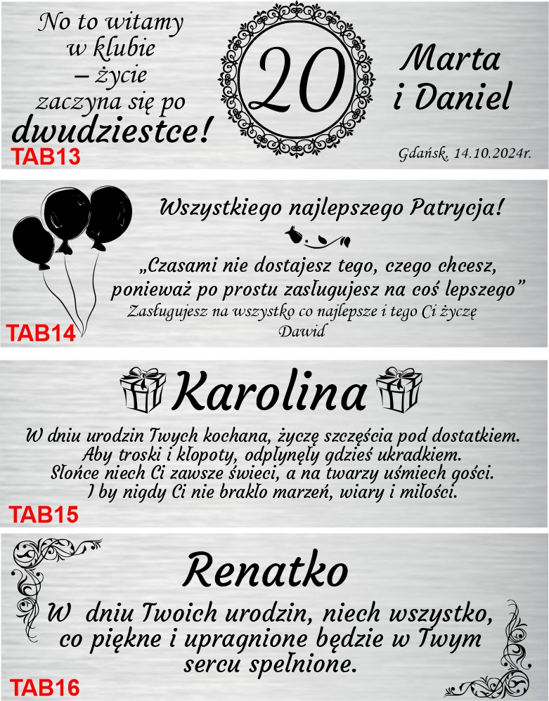 ✔ Tabliczka z dedykacją (srebrna)
