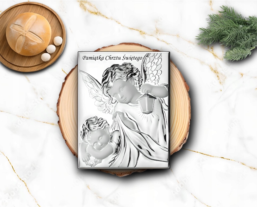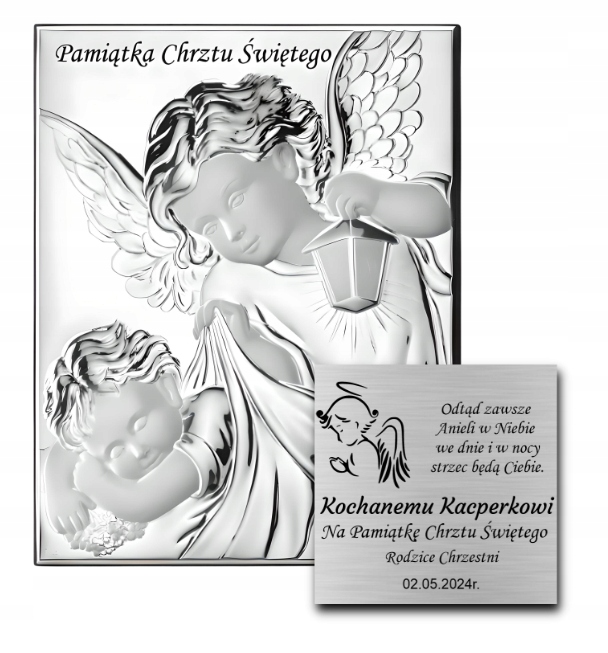 Pamiątka Chrztu Świętego Obrazek Srebrny Aniołek z GRAWEREM GRATIS Prezent