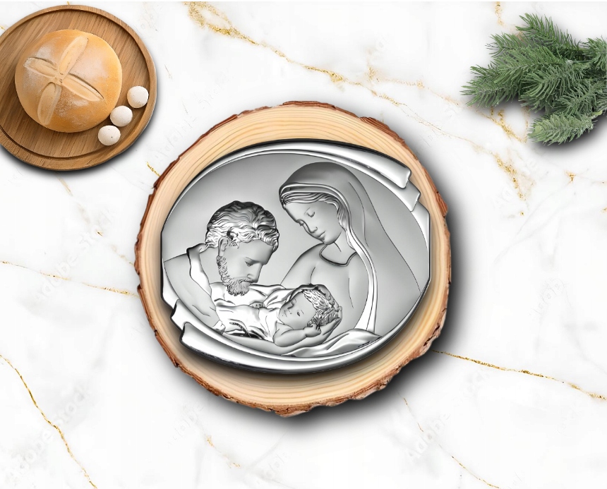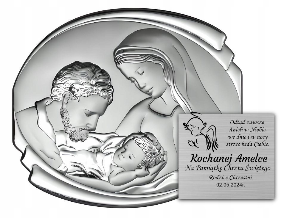 Pamiątka Chrztu Świętego Obrazek Srebrny Rodzina Święta z GRAWEREM GRATIS