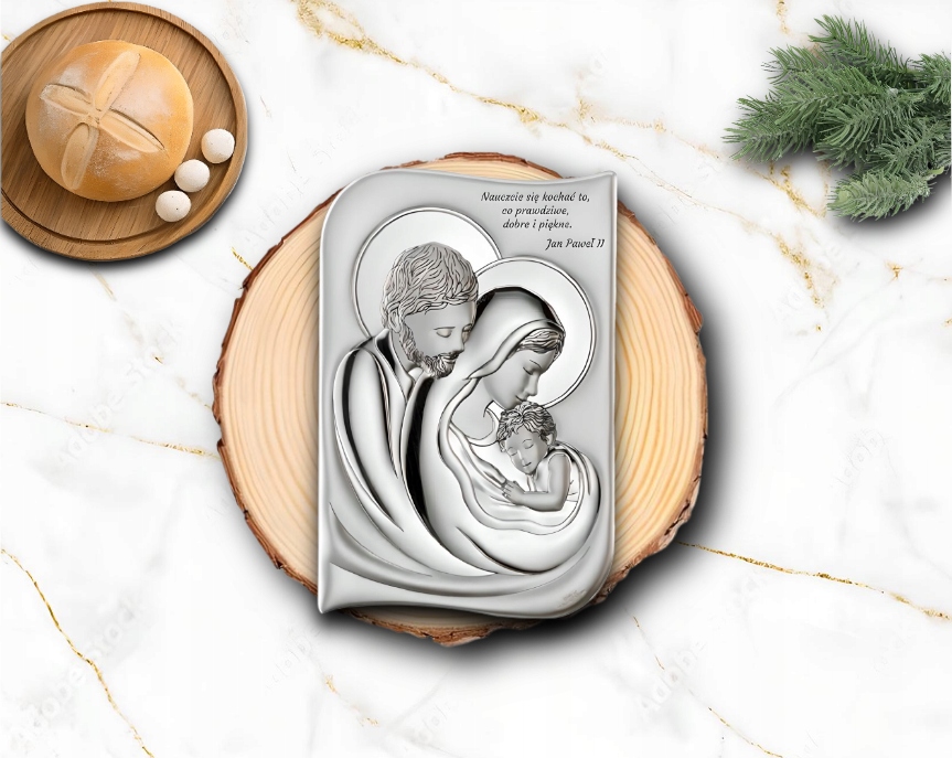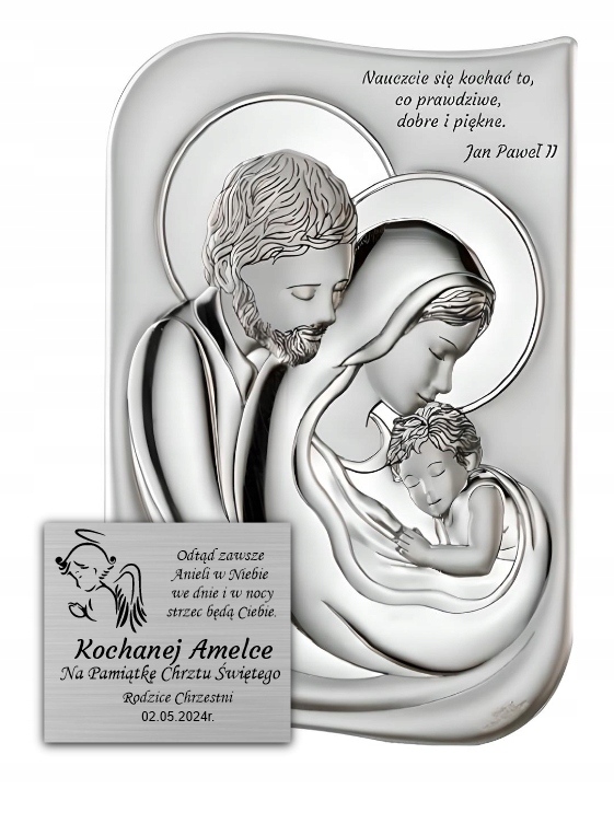 Pamiątka Chrztu Świętego Obrazek Srebrny Rodzina Święta z GRAWEREM GRATIS