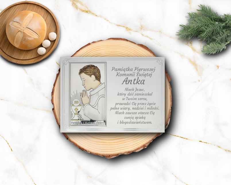 Pamiątka Komunii Świętej Obrazek Srebrny Dla Chłopca GRAWER GRATIS Prezent