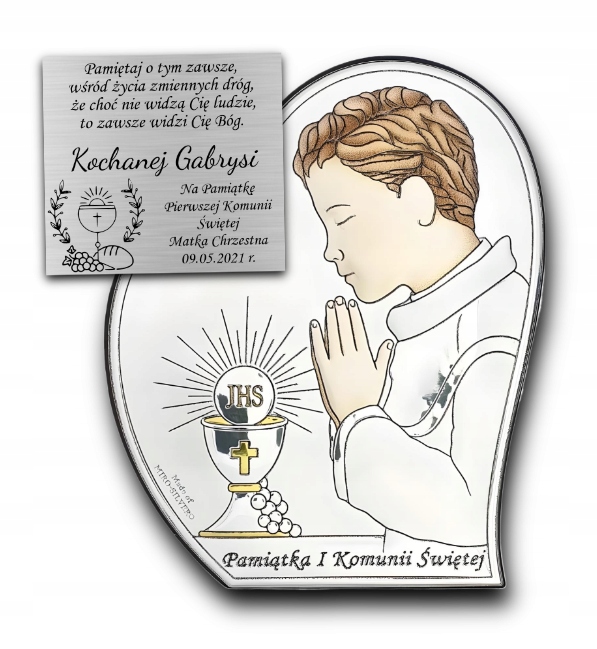 Pamiątka Komunii Świętej Obrazek Srebrny Dla Dziecka GRAWER GRATIS Prezent
