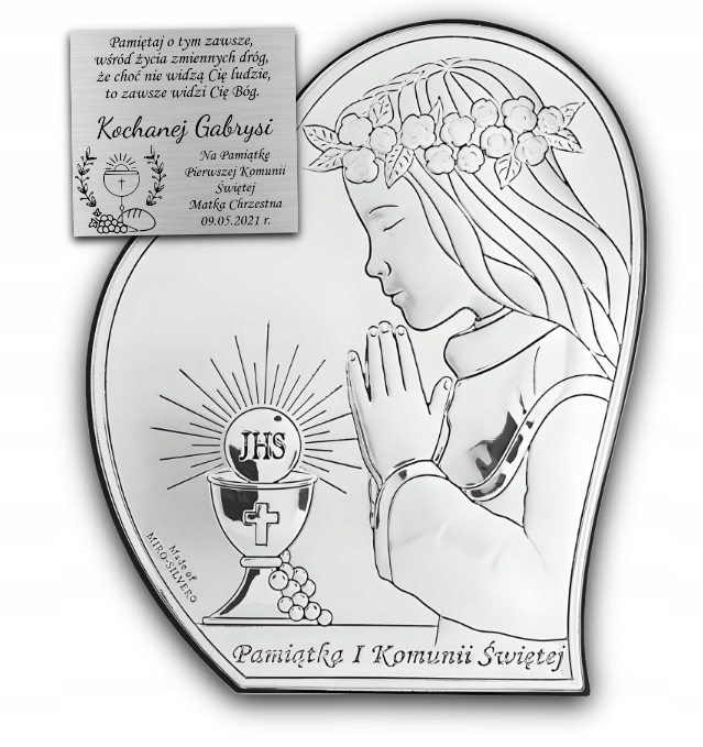 Pamiątka Komunii Świętej Obrazek Srebrny Dla Dziecka GRAWER GRATIS Prezent