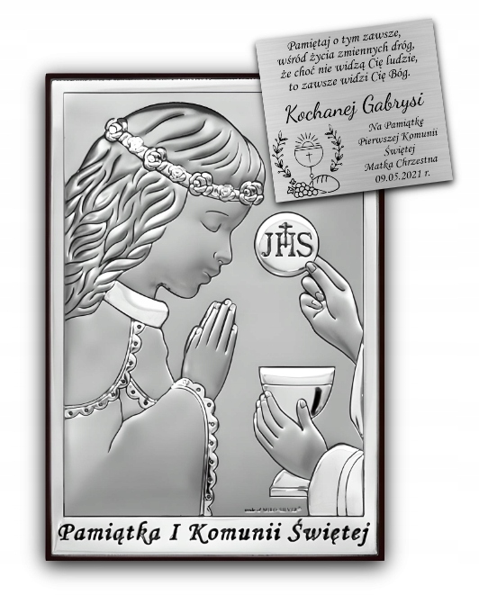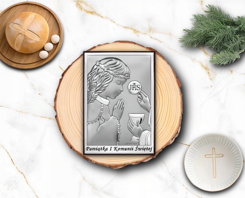 Pamiątka Komunii Świętej Obrazek Srebrny Dla Dziecka GRAWER GRATIS Prezent