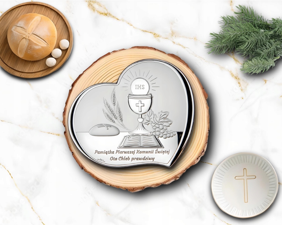 Pamiątka Komunii Świętej Obrazek Srebrny Dla Dziecka GRAWER GRATIS Prezent