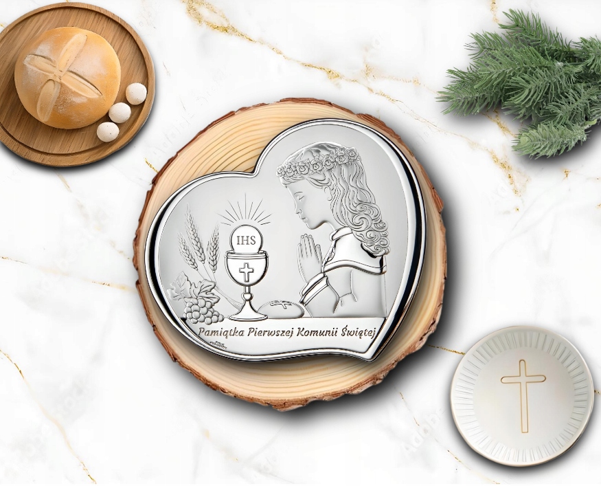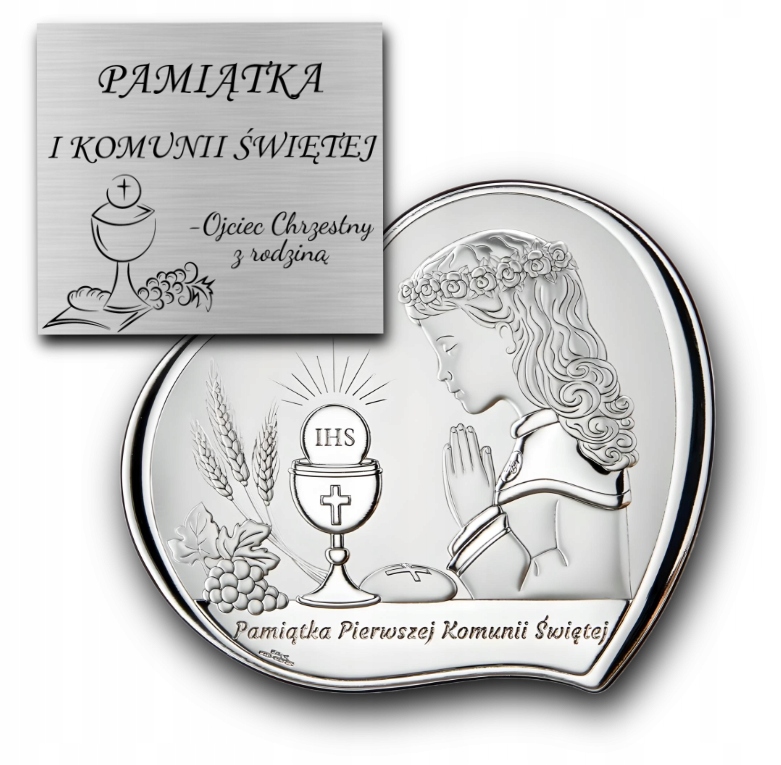 Pamiątka Komunii Świętej Obrazek Srebrny Dla Dziecka GRAWER GRATIS Prezent