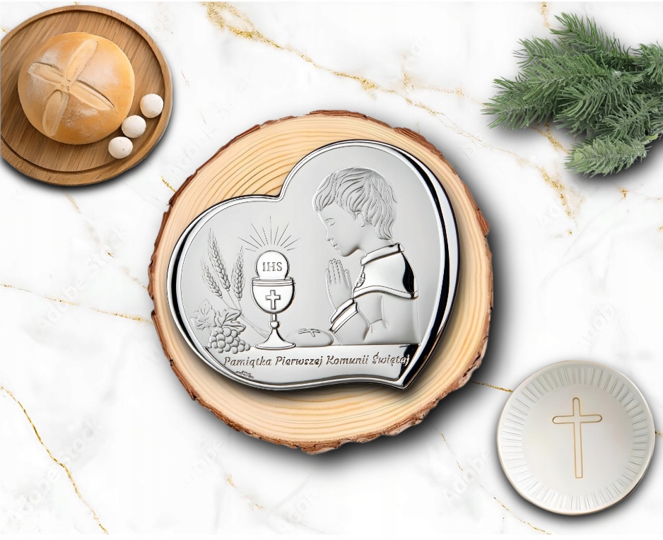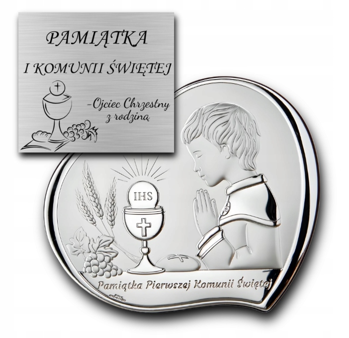 Pamiątka Komunii Świętej Obrazek Srebrny Dla Dziecka GRAWER GRATIS Prezent
