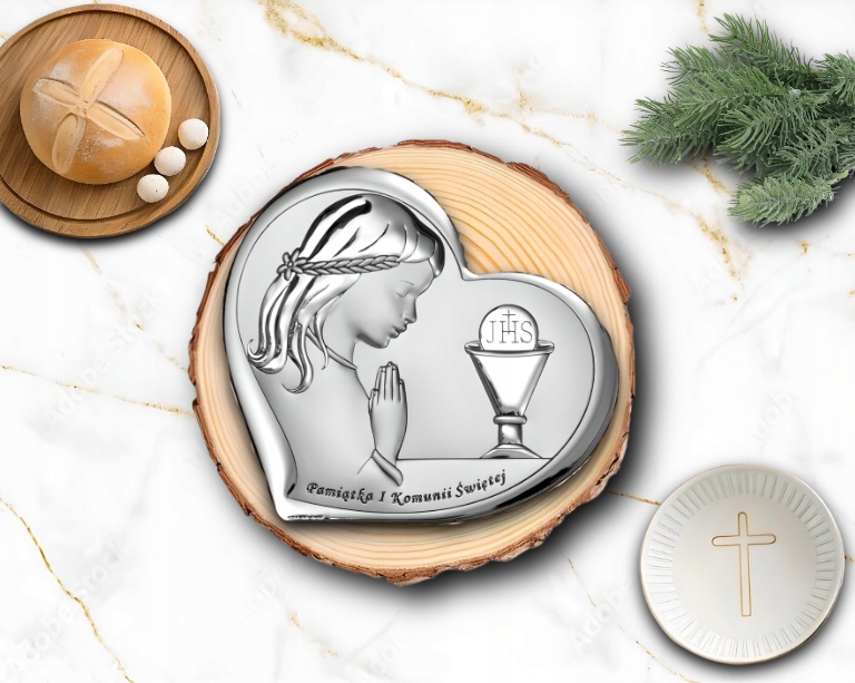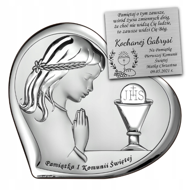 Pamiątka Komunii Świętej Obrazek Srebrny Dla Dziecka GRAWER GRATIS Prezent