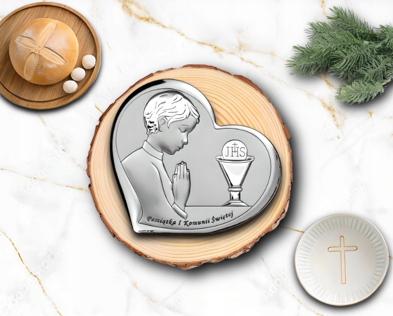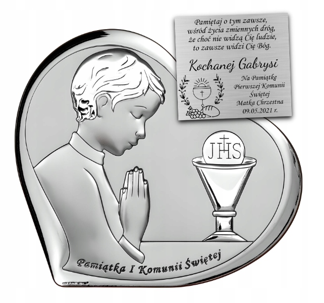 Pamiątka Komunii Świętej Obrazek Srebrny Dla Dziecka GRAWER GRATIS Prezent