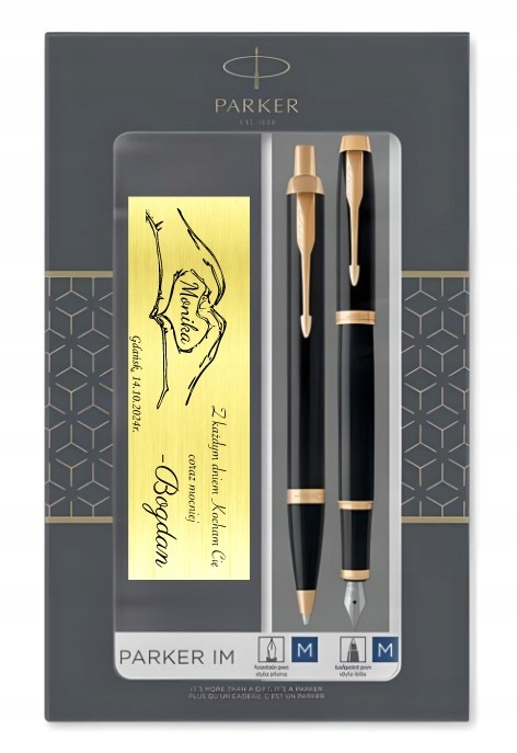 Pióro wieczne i długopis Parker IM czarny GRAWER Prezent dla Mamy Taty
