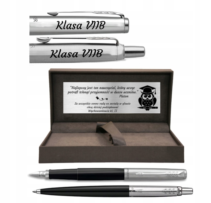 Ekskluzywnego pudełka prezentowego Parker — z grawerowaną tabliczką, idealne na elegancki prezent.