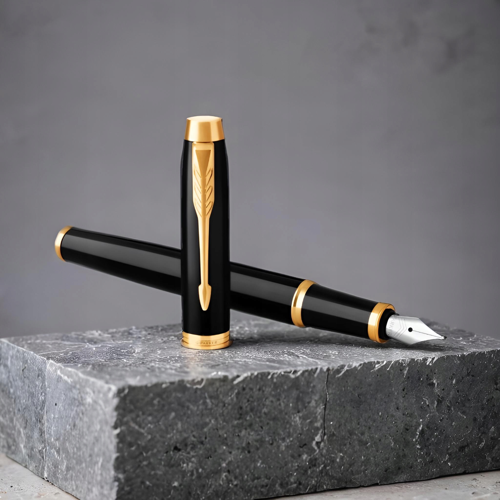 ✅Eleganckie pióro wieczne Parker IM z wykończeniem pozłacanym 23-karatowym złotem.