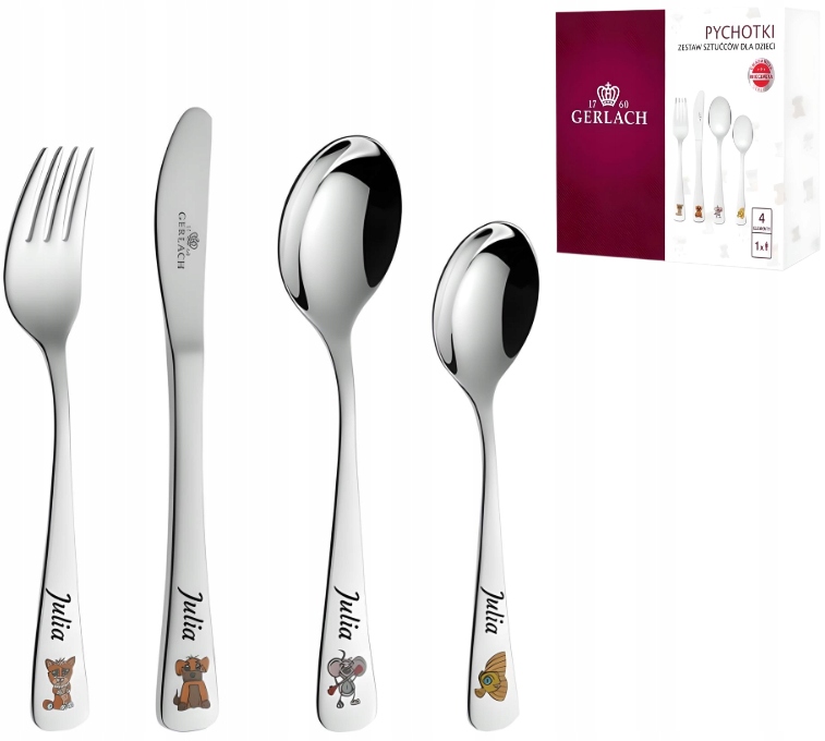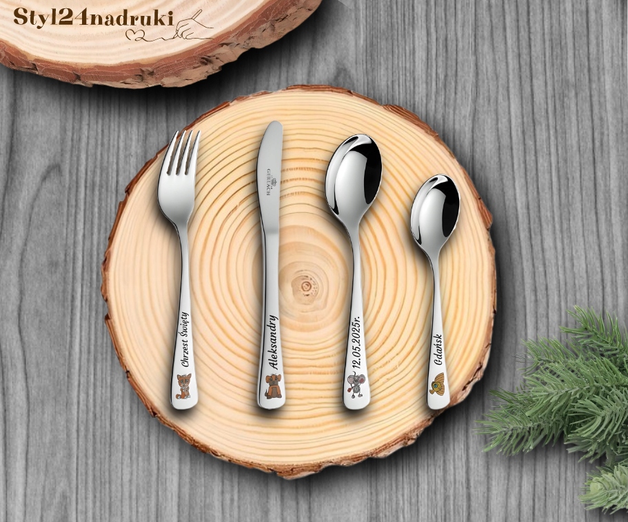 Prezent na Chrzest Roczek Sztućce dla dzieci GERLACH PYCHOTKI GRAWER