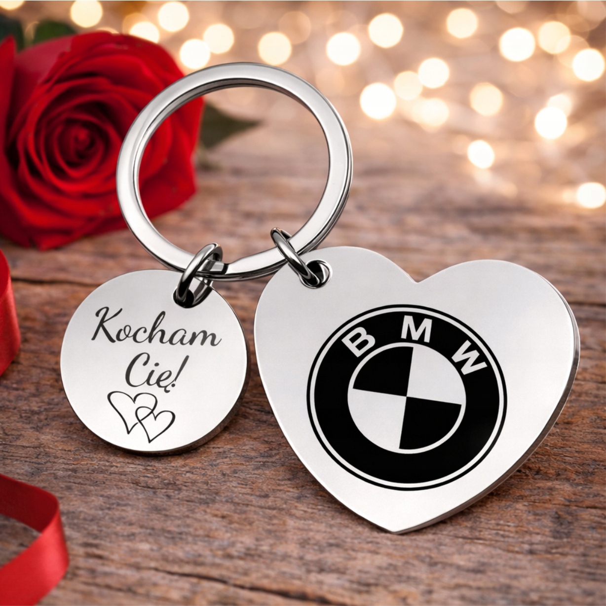 Prezent na Dzień Chłopaka Brelok do Kluczy Srebrny BMW AUDI GRAWER GRATIS