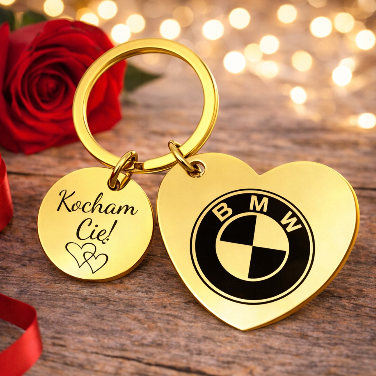 Prezent na Dzień Chłopaka Brelok do Kluczy Złoty BMW AUDI z GRAWEREM GRATIS