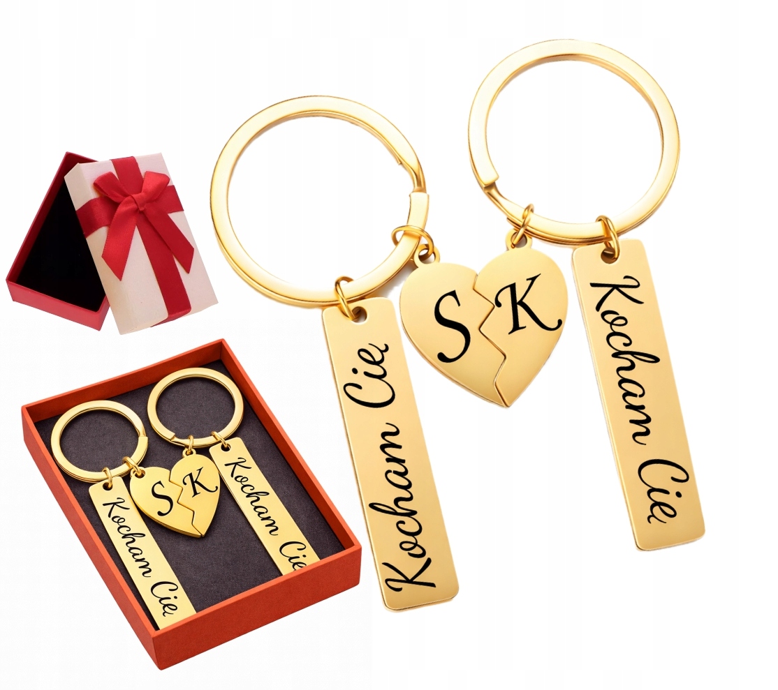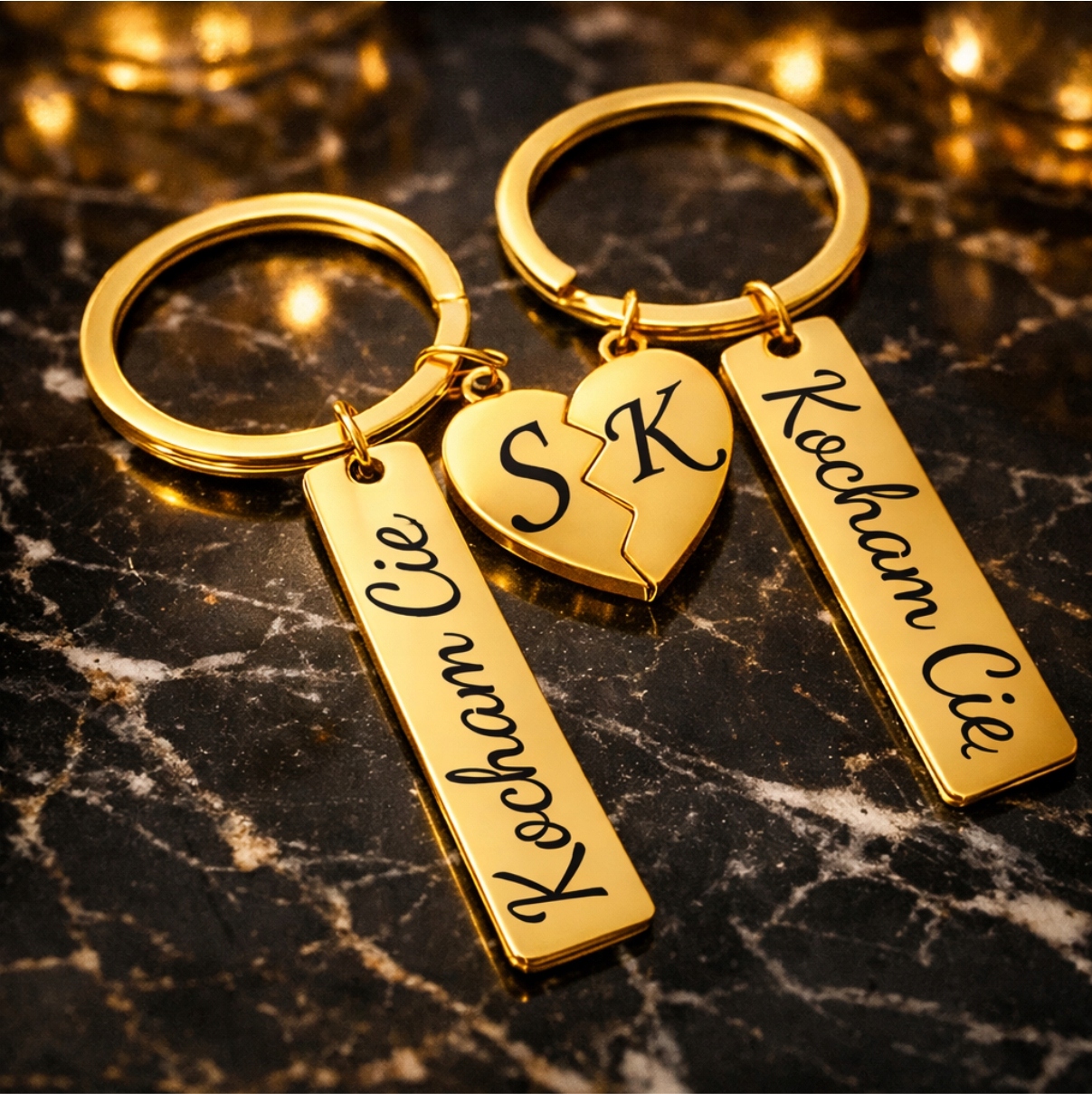Prezent na Dzień Chłopaka Breloki dla Par SERCE Złote z GRAWEREM GRATIS