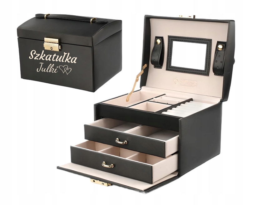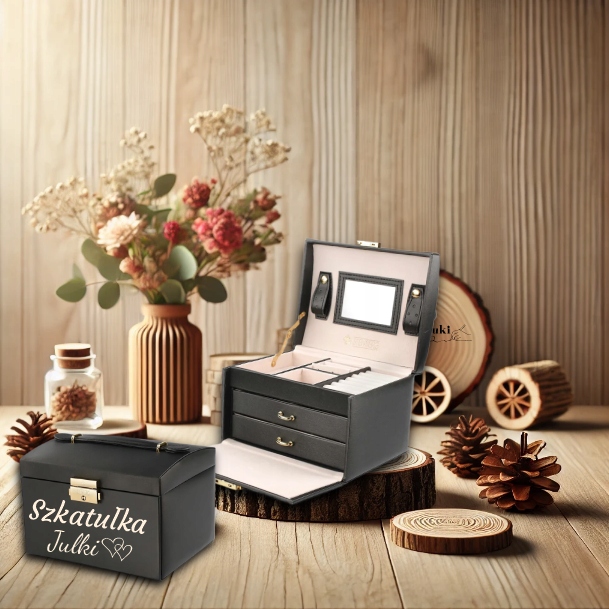 Prezent na Dzień Kobiet Czarna Szkatułka z GRAWEREM GRATIS Dzień Matki