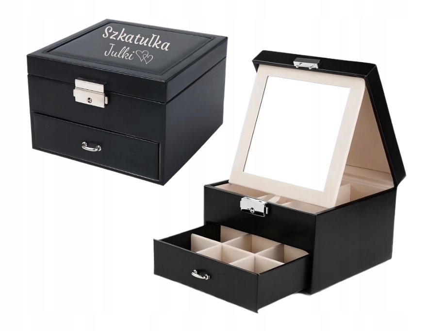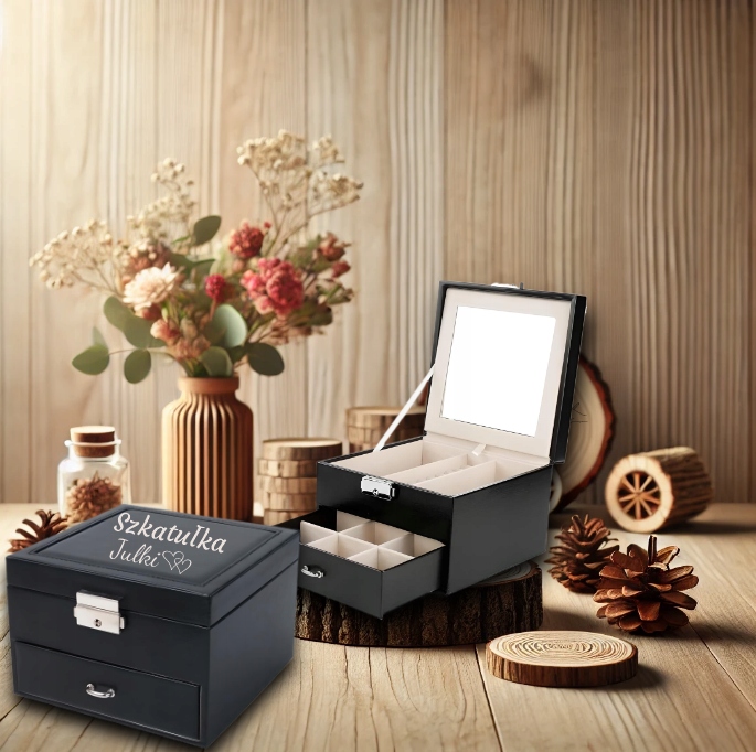 Prezent na Dzień Kobiet Czarna Szkatułka z GRAWEREM GRATIS Dzień Matki