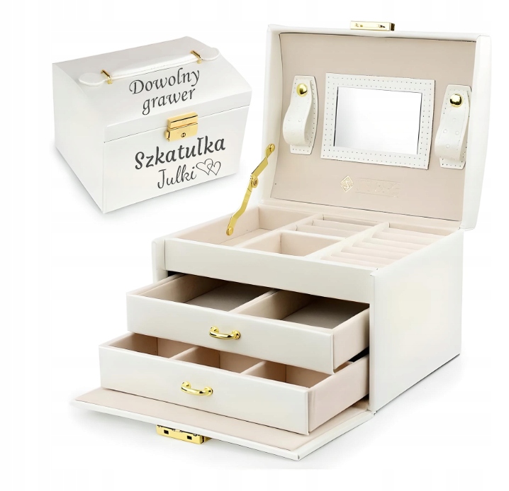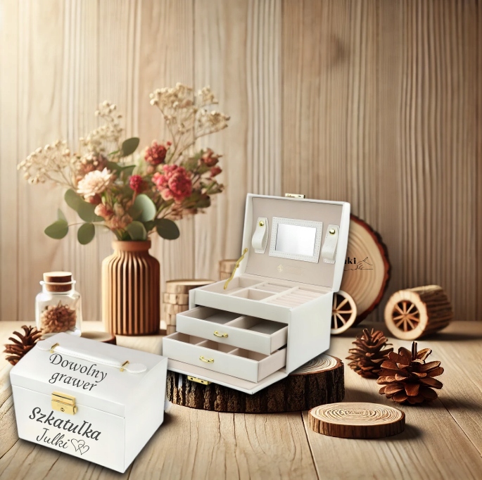 Prezent na Dzień Kobiet Kremowa Szkatułka z GRAWEREM GRATIS Dzień Matki