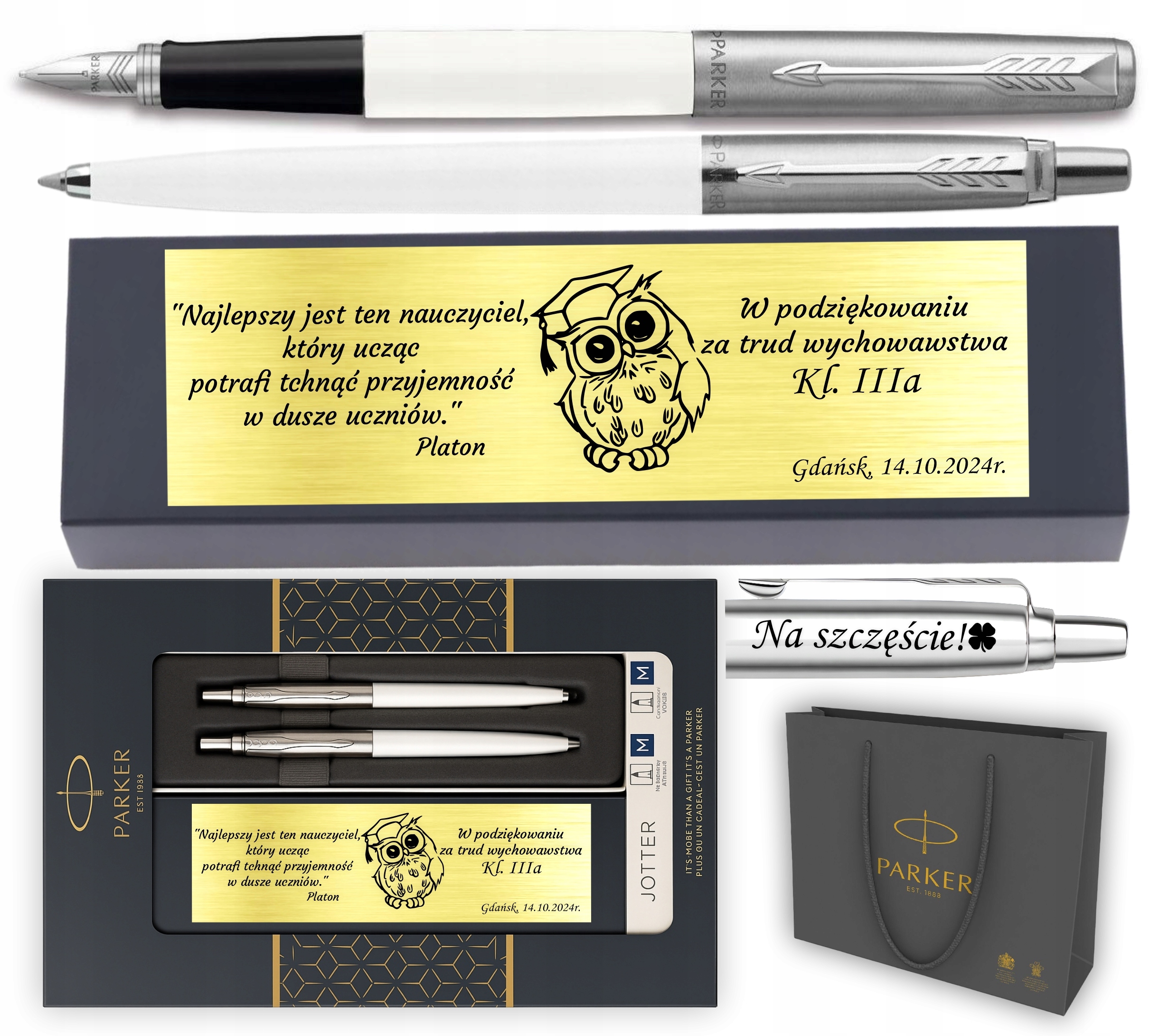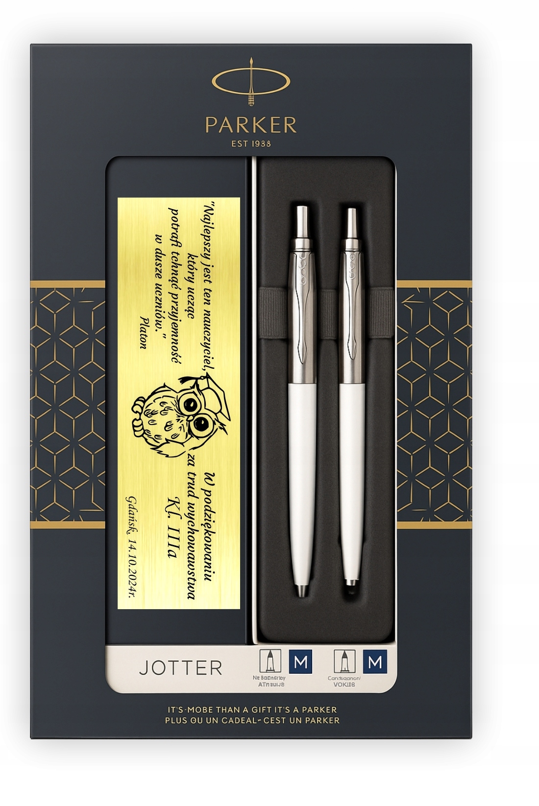 Zestaw Parker Jotter 60 Biały – Pióro + Długopis + Grawer + Tabliczka + Pudełko Parker