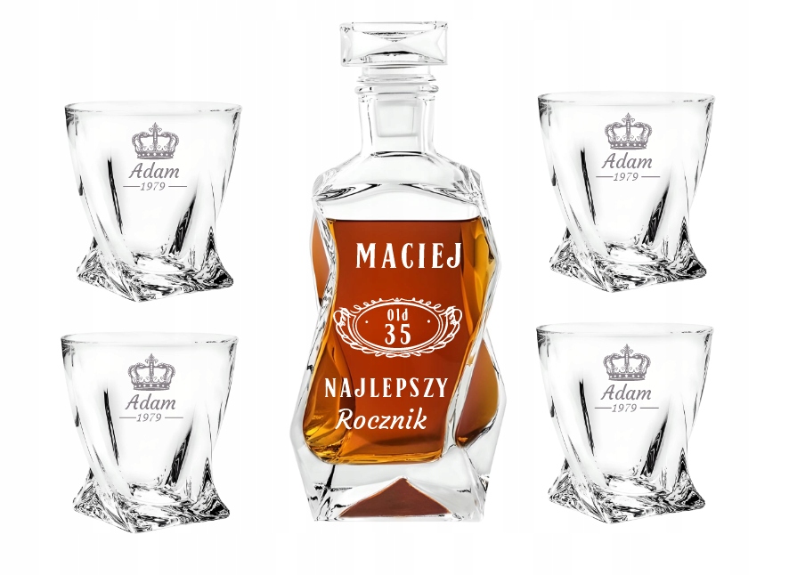 Prezent na Walentynki Zestaw Karafka 4 Szklanek do Whisky Grawer Urodziny