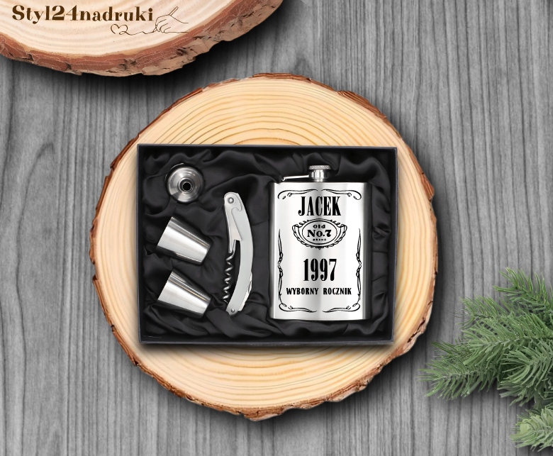 Prezent na Walentynki Zestaw Piersiówka Stalowa 240ml z GRAWEREM GRATIS