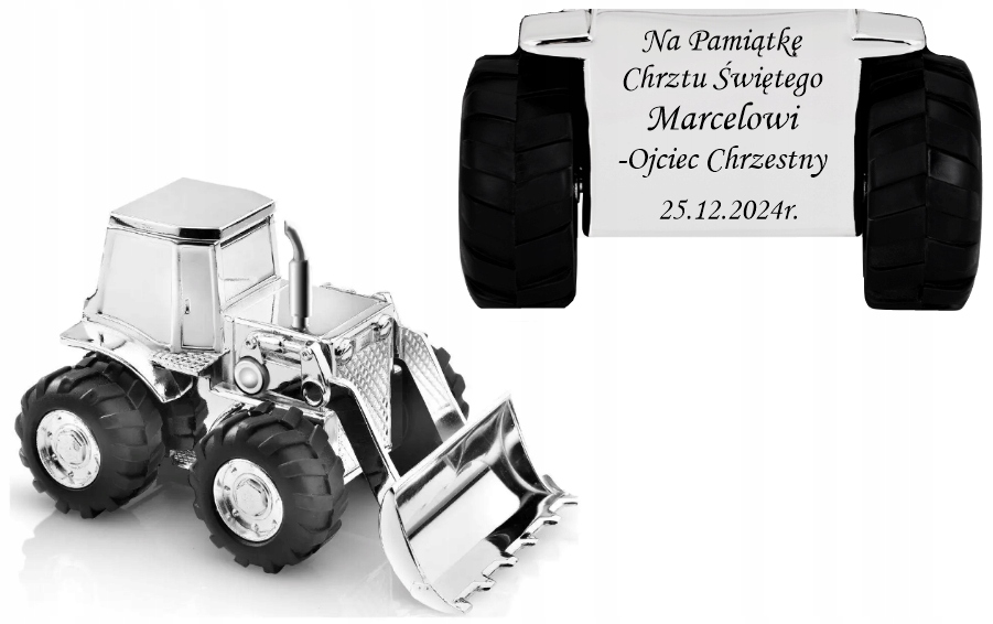 Skarbonka Srebrna KOPARKA GRAWER GRATIS Prezent Dla Dziecka Chrzest Roczek