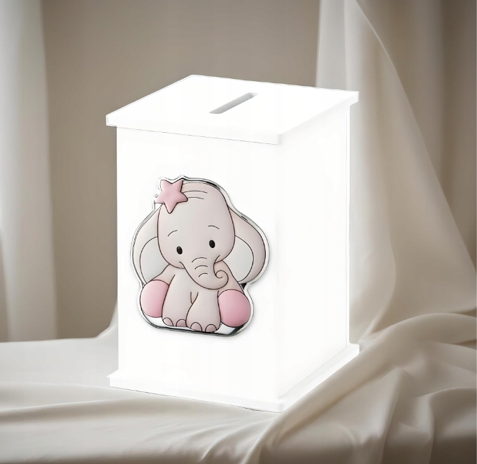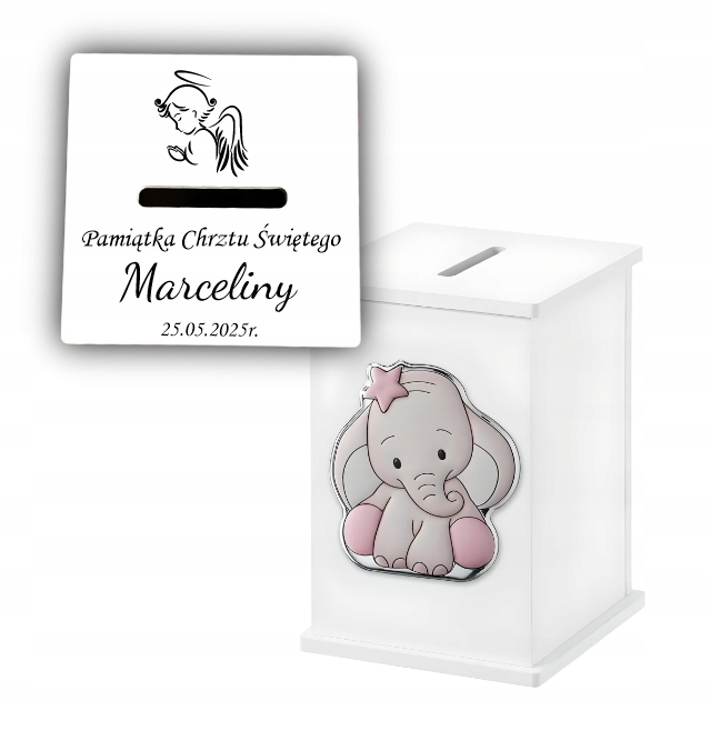 Skarbonka Srebrna SŁONIK GRAWER GRATIS Prezent dla Dziecka Chrzest Roczek