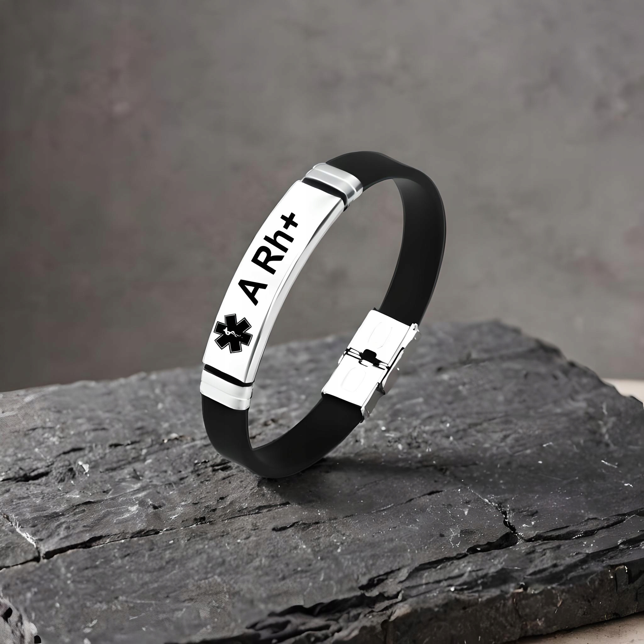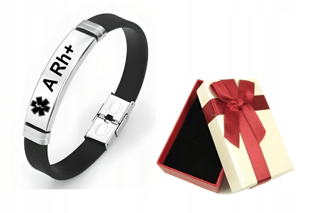 Bransoletka Srebrna Medyczna Grupa Krwi z GRAWEREM Prezent dla Taty Dziadka