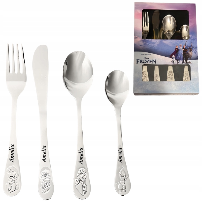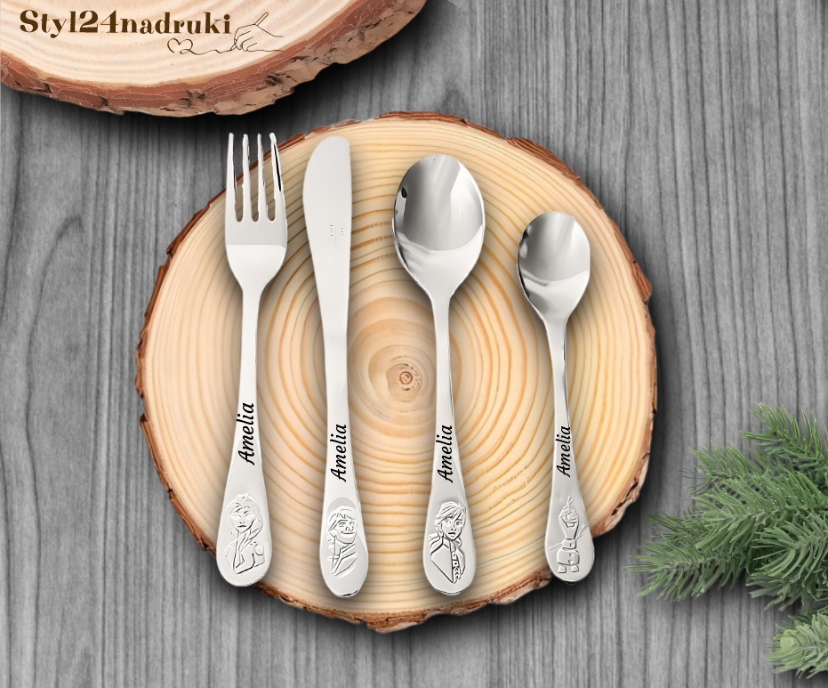 Sztućce dla dzieci Kraina Lodu 4 szt. GRAWER Prezent Chrzest Roczek frozen