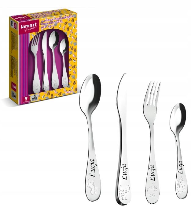Sztućce dla dzieci Lamart DZIECIĘCE 4 szt. metal GRAWEREM Prezent na Roczek