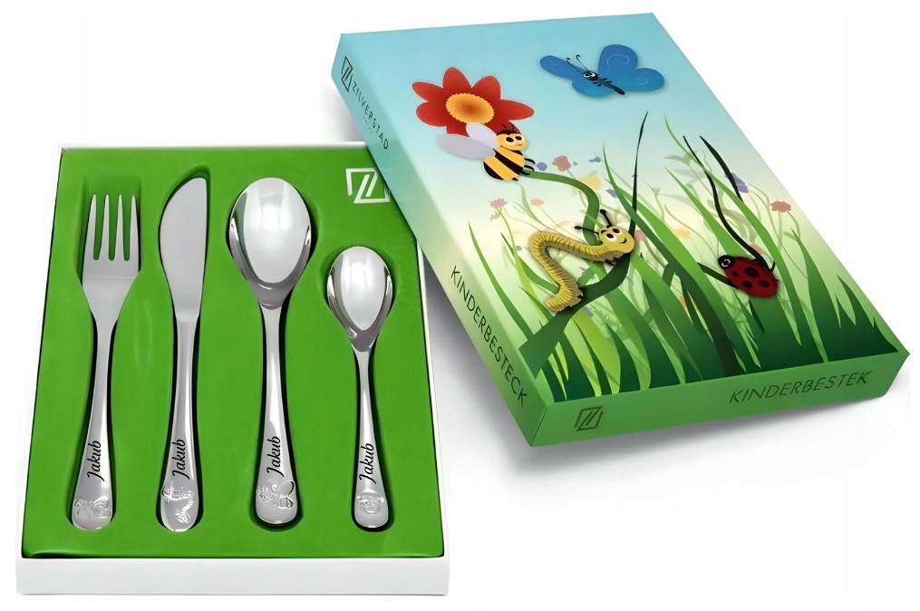 Sztućce dla dzieci ZILVERTSAD OWADY motyle GRAWER Prezent na Chrzest Roczek
