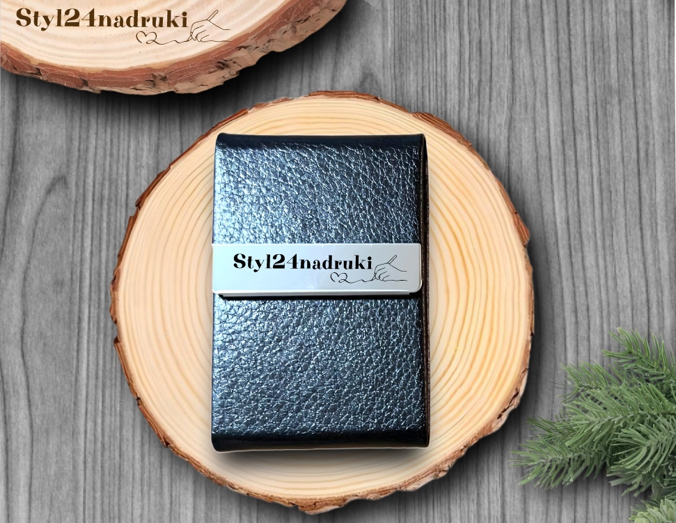 Wizytownik Skórzany czarny z GRAWEREM GRATIS