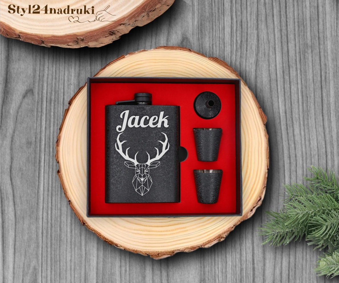 Zestaw Piersiówka Chropowata 240ml GRAWER Prezent Dla Taty Chłopaka Dziadka